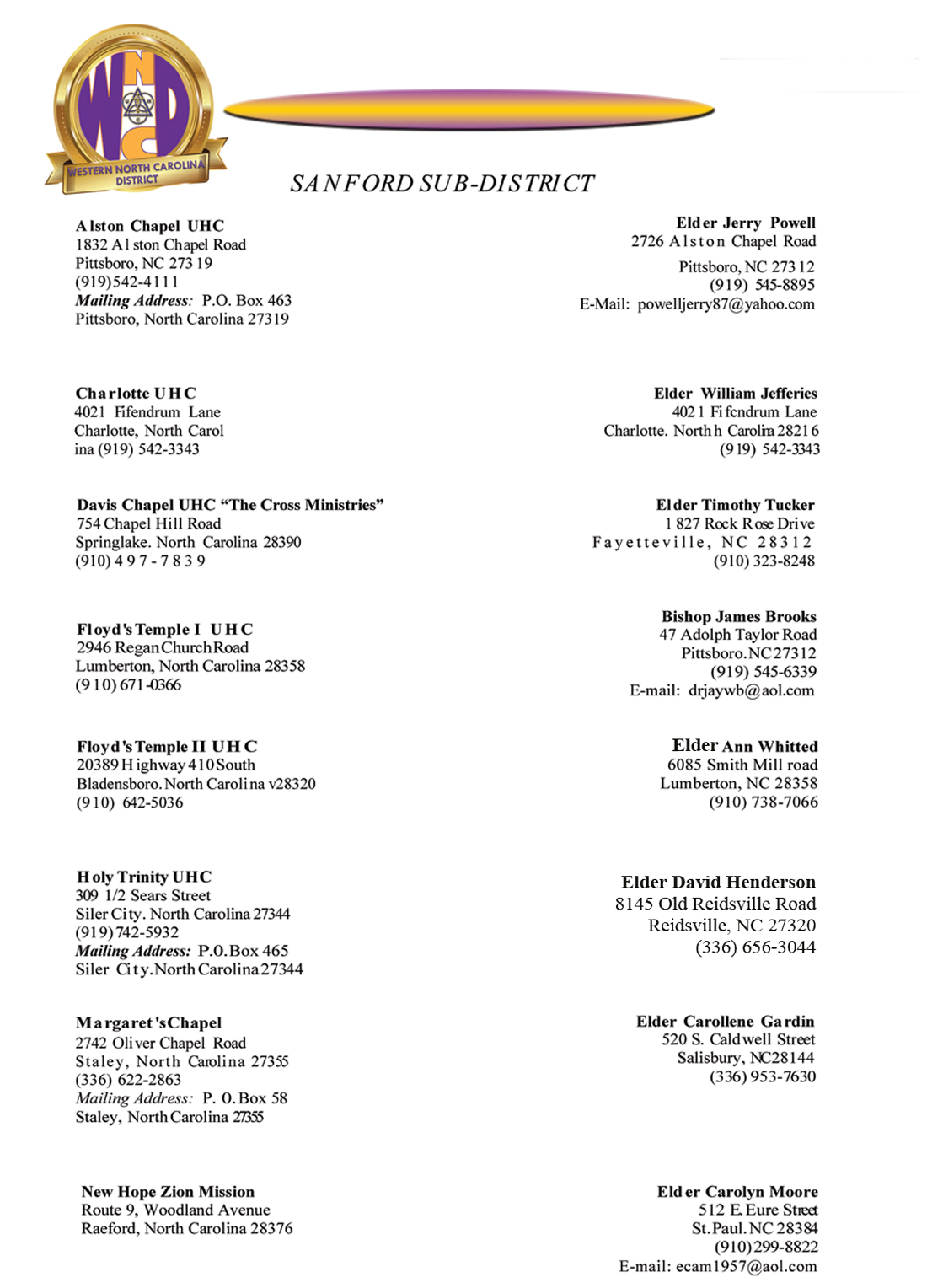 • Sanford Sub-District Elders